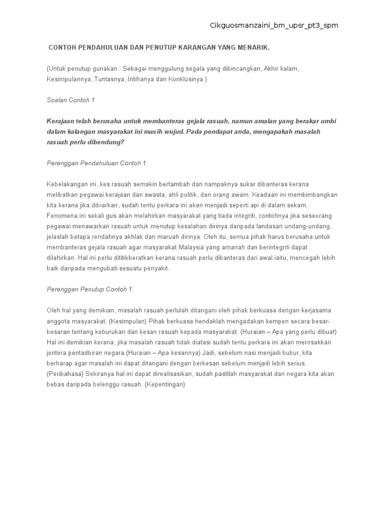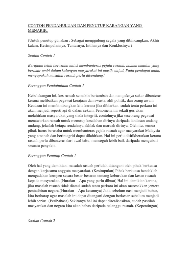 Contoh Pendahuluan Dan Penutup Karangan Yang Menarik Pdf
