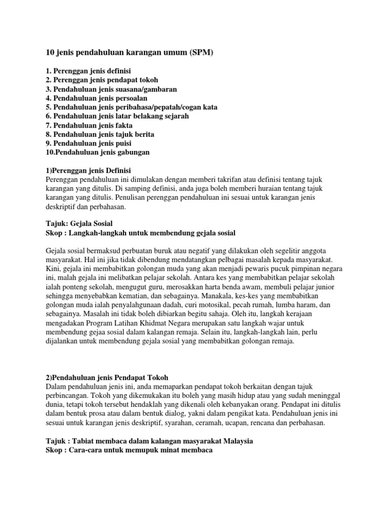 10 Jenis Pendahuluan Karangan Umum Pdf